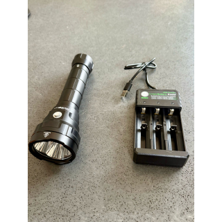 Lampe WURKOS 13000 Lumens avec chargeur et batteries .C’est une lampe compacte trĂšs puissante dotĂ©e d’une super autonomie.
